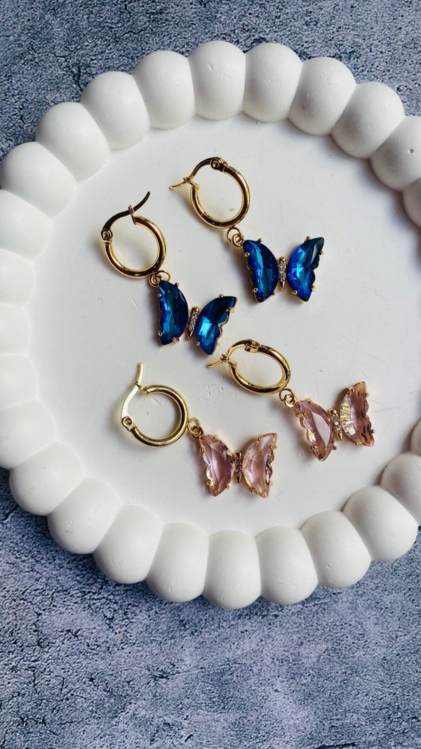 ARGOLLAS ACERO DORADO MARIPOSAS