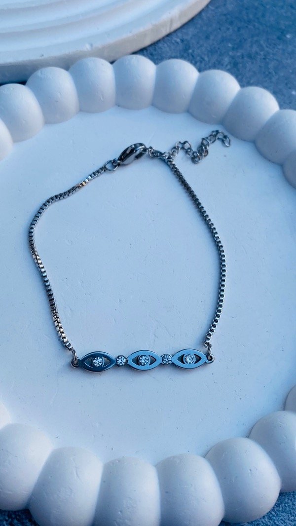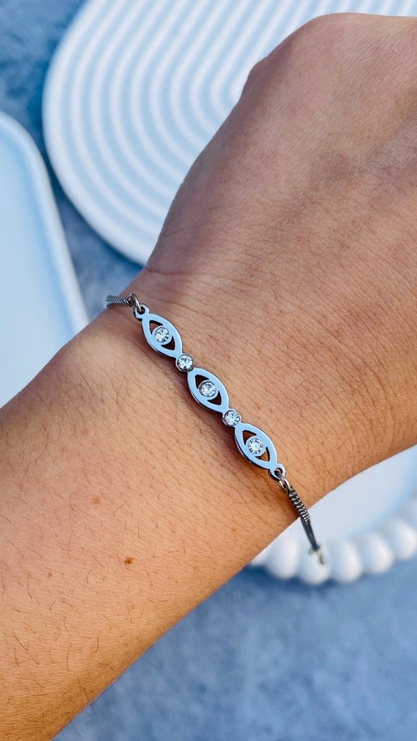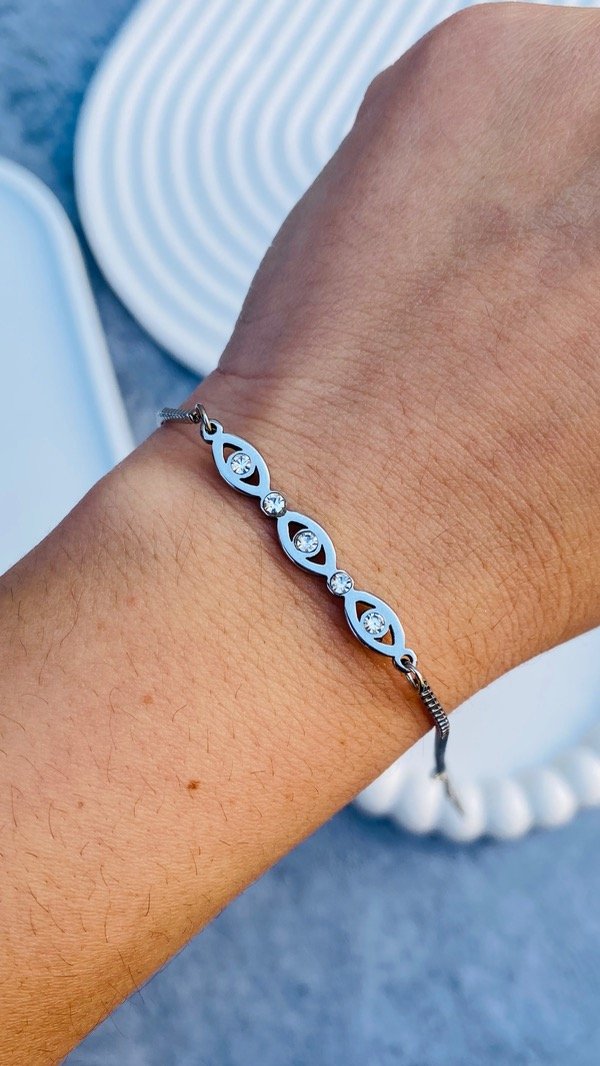 PULSERA ACERO QUIRÚRGICO TRIPLE OJO STRAS