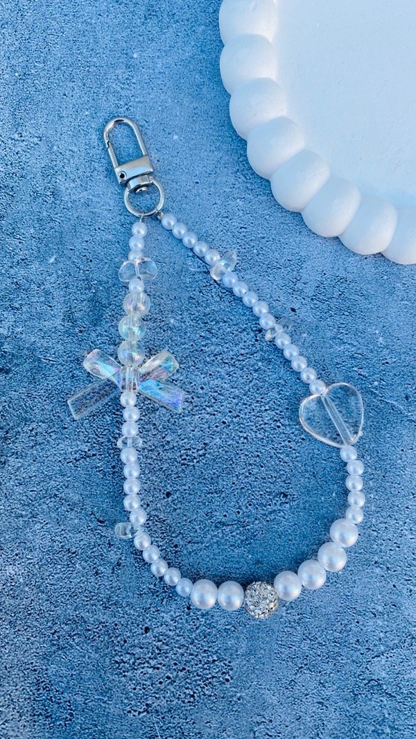 LLAVERO CHARMS PERLAS FLOR ROSA